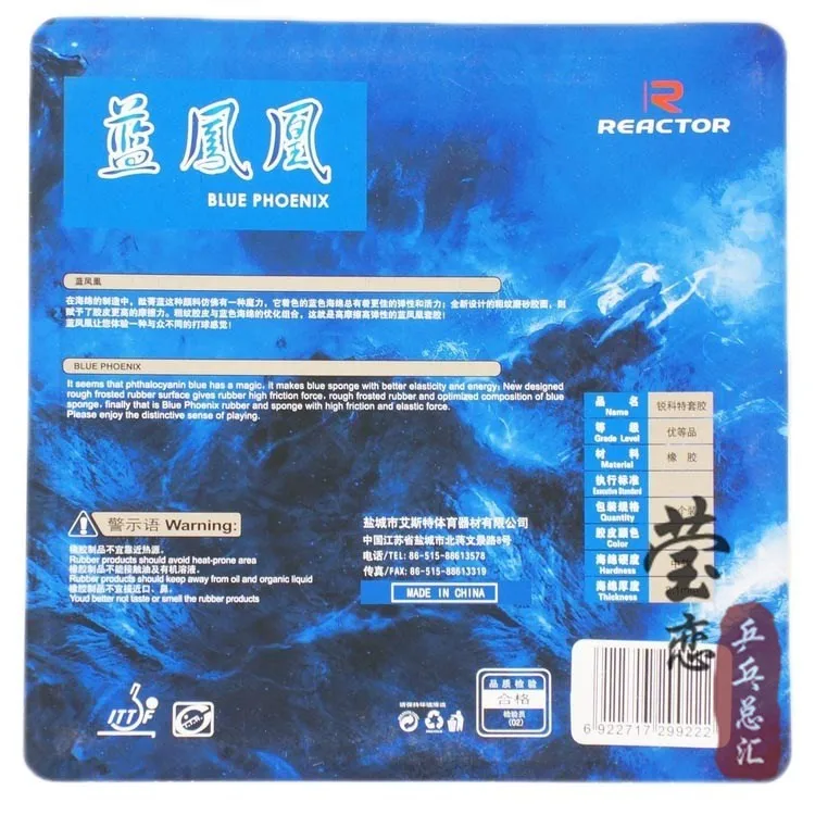 Original Reactor ckylin blue fhoenix table tennis rubber with blue sponge pimples in racquet sports