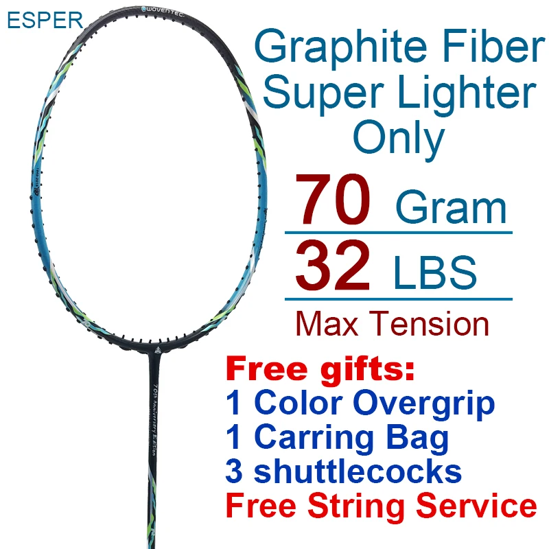 Esper Badminton Racket 70Gram Badminton Racquet Super Light Carbon Fiber Graphite With String Bag O